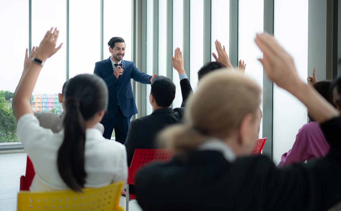 Распространенная ошибка, которая любую речь превращает в скучную лекцию, — изложение в формате монолога. Это неправильно. Даже если говорит только спикер, с залом следует разговаривать и как минимум задавать риторические вопросы — они возвращают внимание слушателей. Проводите мини-голосования, просите слушателей поднимать руку, если у них есть вопрос. Время для вопросов обычно наступает примерно на 30-й и 60-й минутах. Такой интерактив помогает вернуть внимание аудитории и снижает тревожность спикера.
