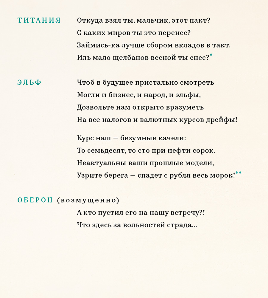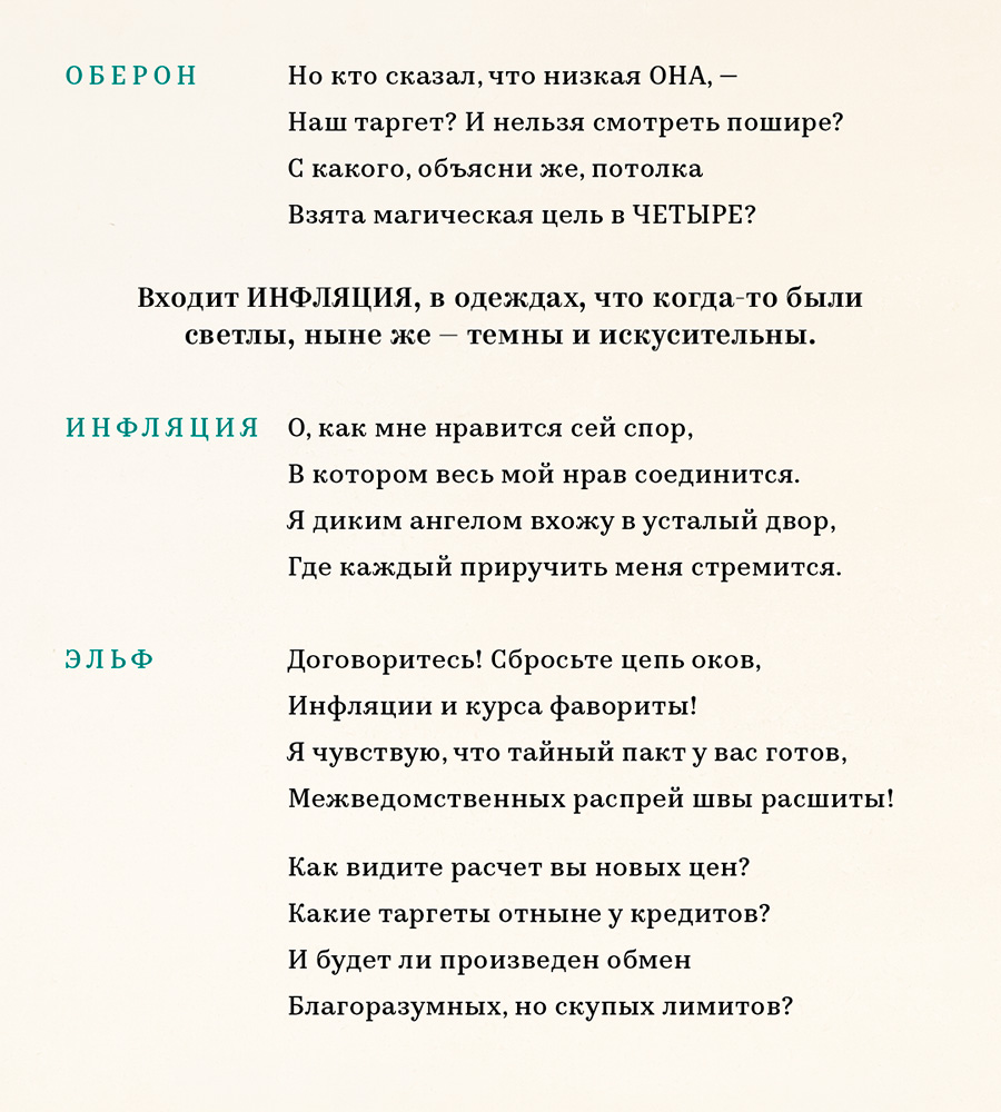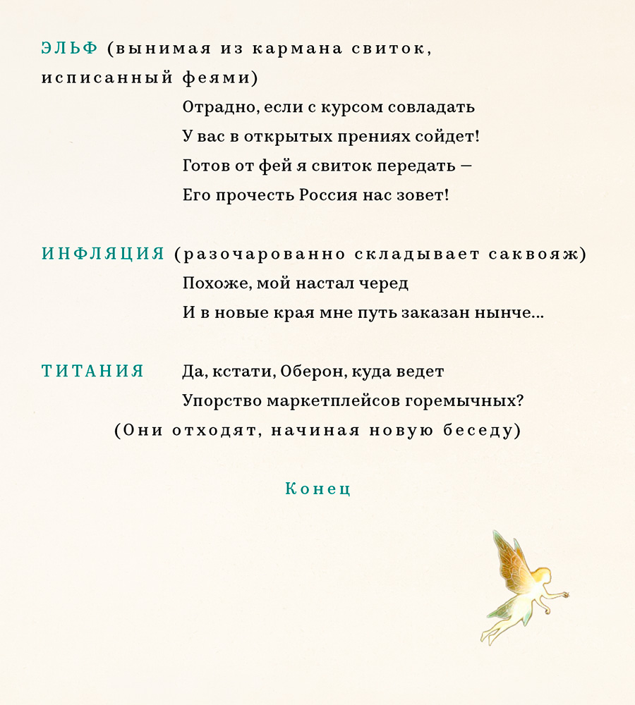 Подозревающий заключение пакта эльф требует от Оберона раскрыть подробности соглашения. В том числе — каким именно высокие договаривающиеся стороны видят будущий курс рубля и как именно планируют сдерживать «безумные качели», на которых тот балансирует.