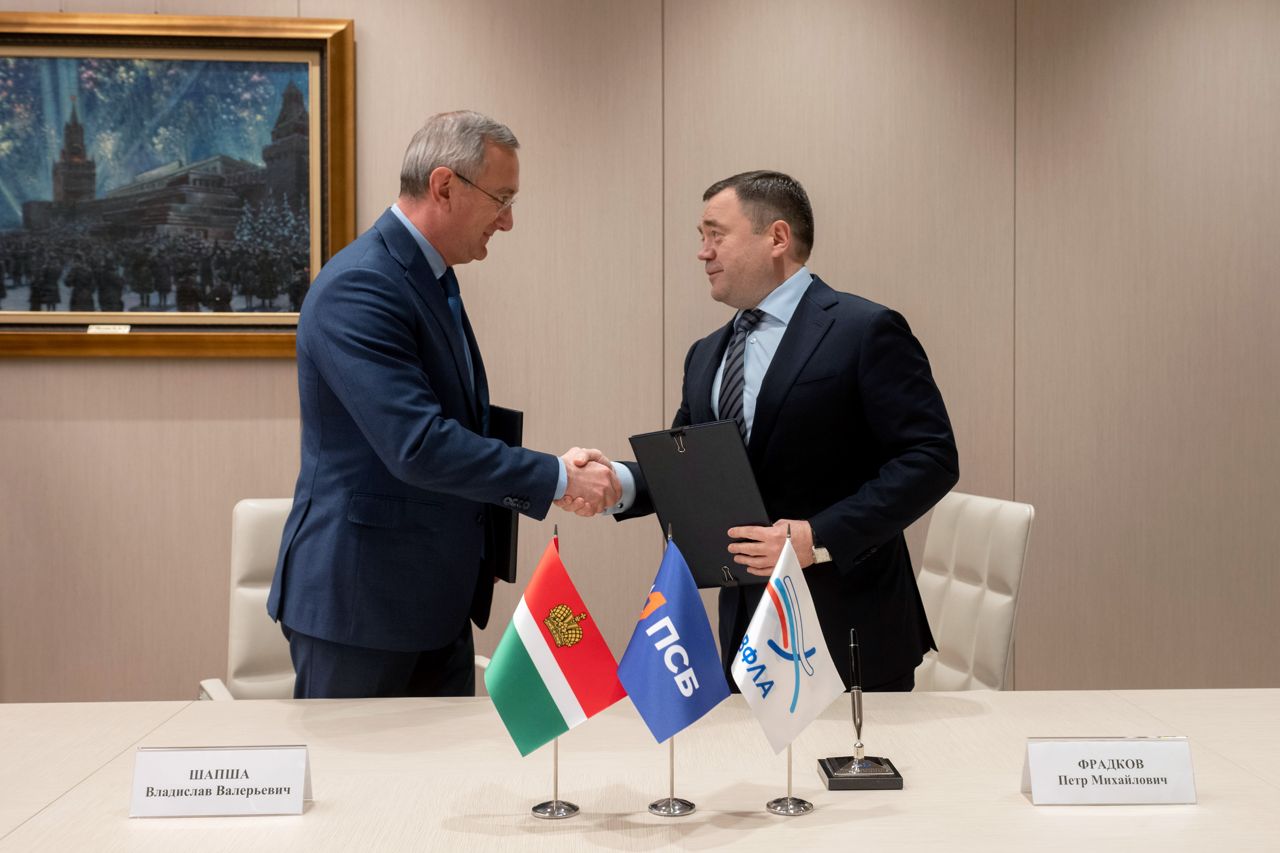 Петр Фрадков, председатель ПСБ, и Владислав Шапша, губернатор Калужской области, подписали соглашение о сотрудничестве между банком и правительством региона, которое продлило сотрудничество в рамках реализованного пятилетнего соглашения с 2020 по 2025 годы.
