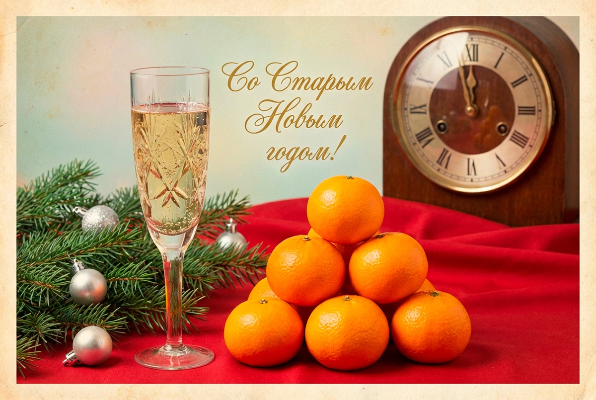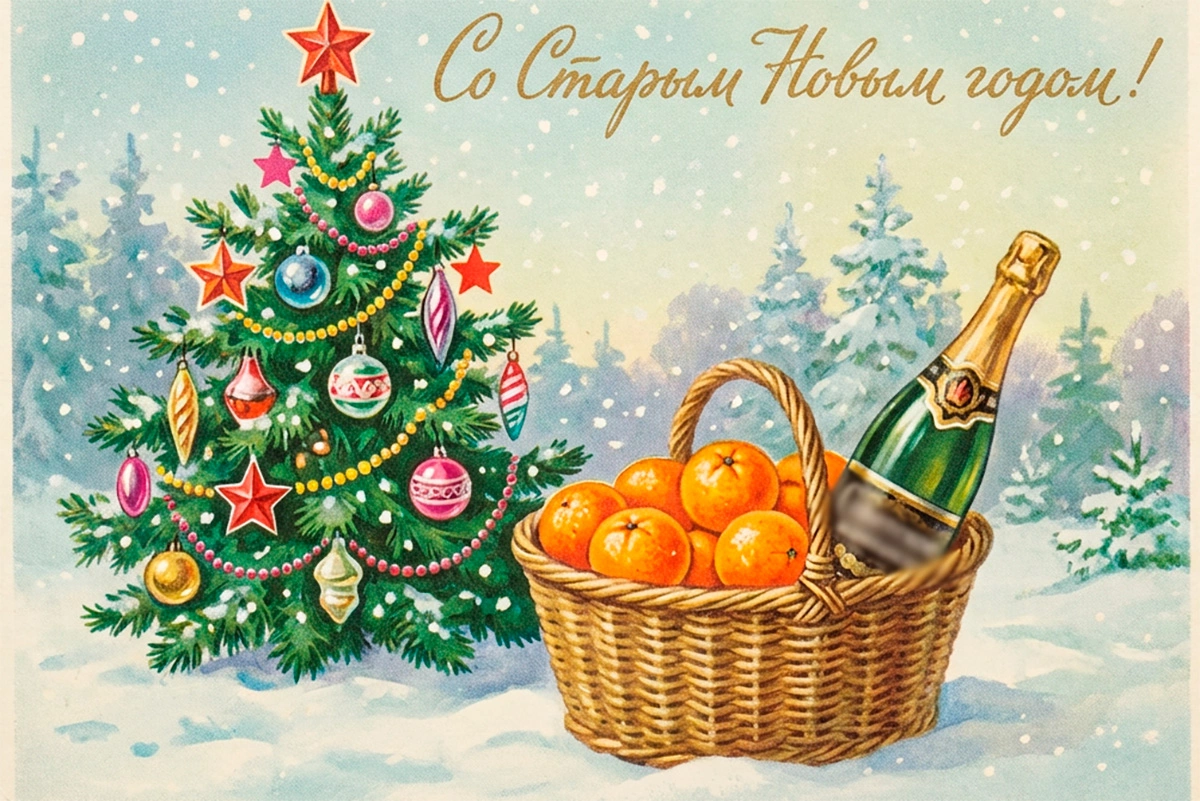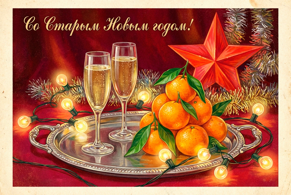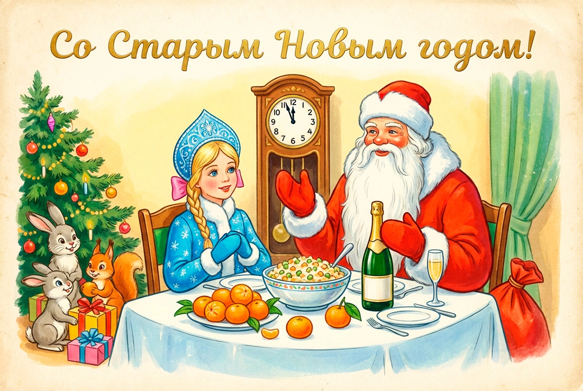 15 открыток на Старый Новый год — 2026: советские и в стиле ретро
