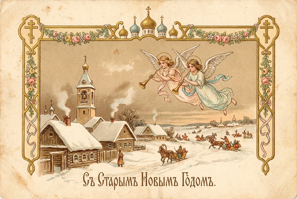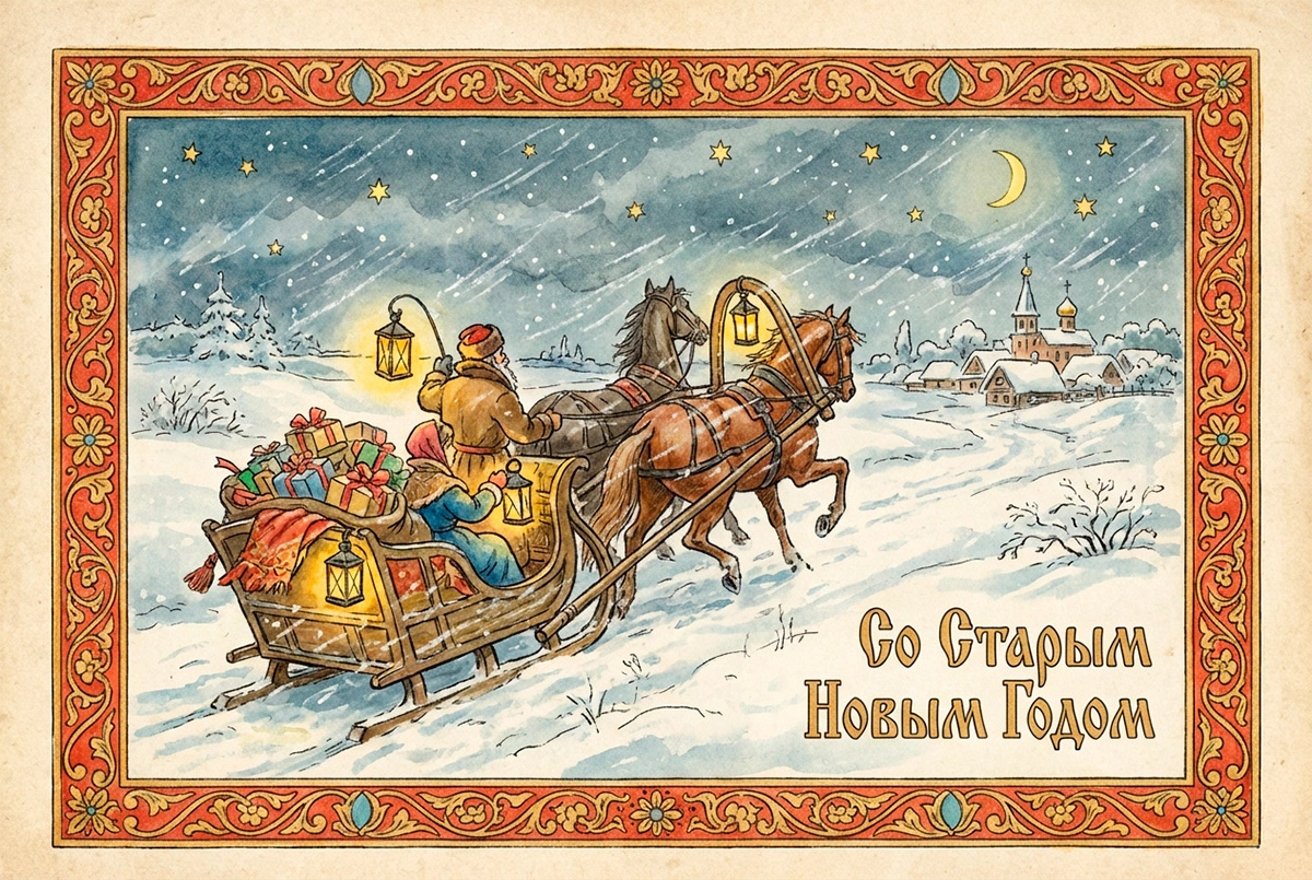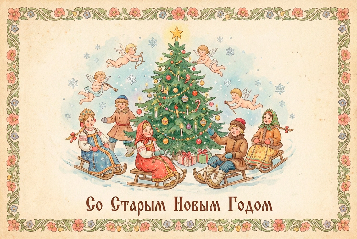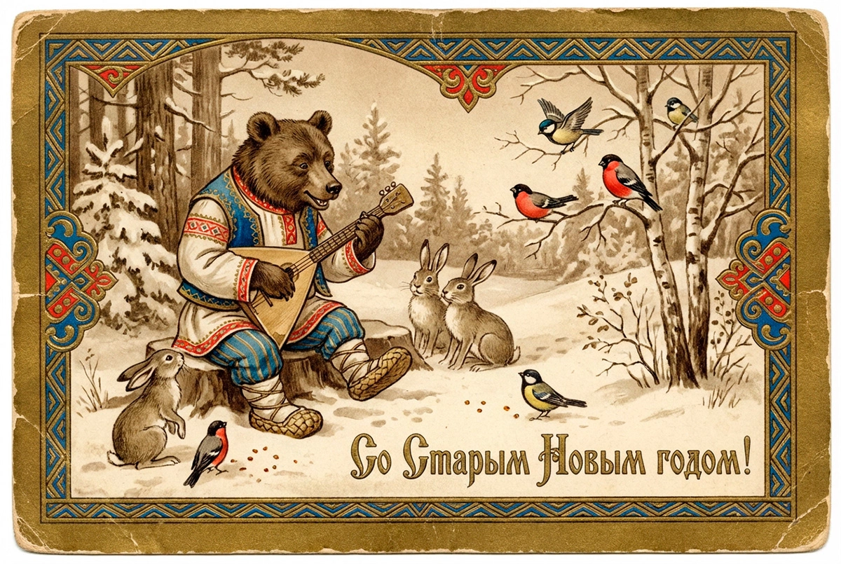 15 открыток на Старый Новый год — 2026: советские и в стиле ретро