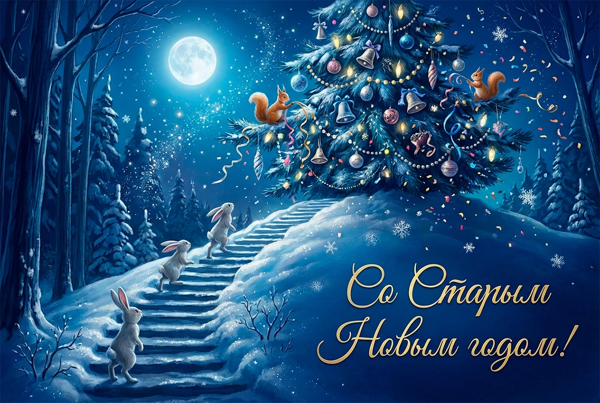 В любом случае поздравьте близких и родных красивой открыткой и пожеланиями добра, здоровья и счастья. Старый Новый год — прекрасный повод для этого. РБК Life подготовил тематические открытки со Старым Новым годом — 2026, выбирайте, что вам по душе!