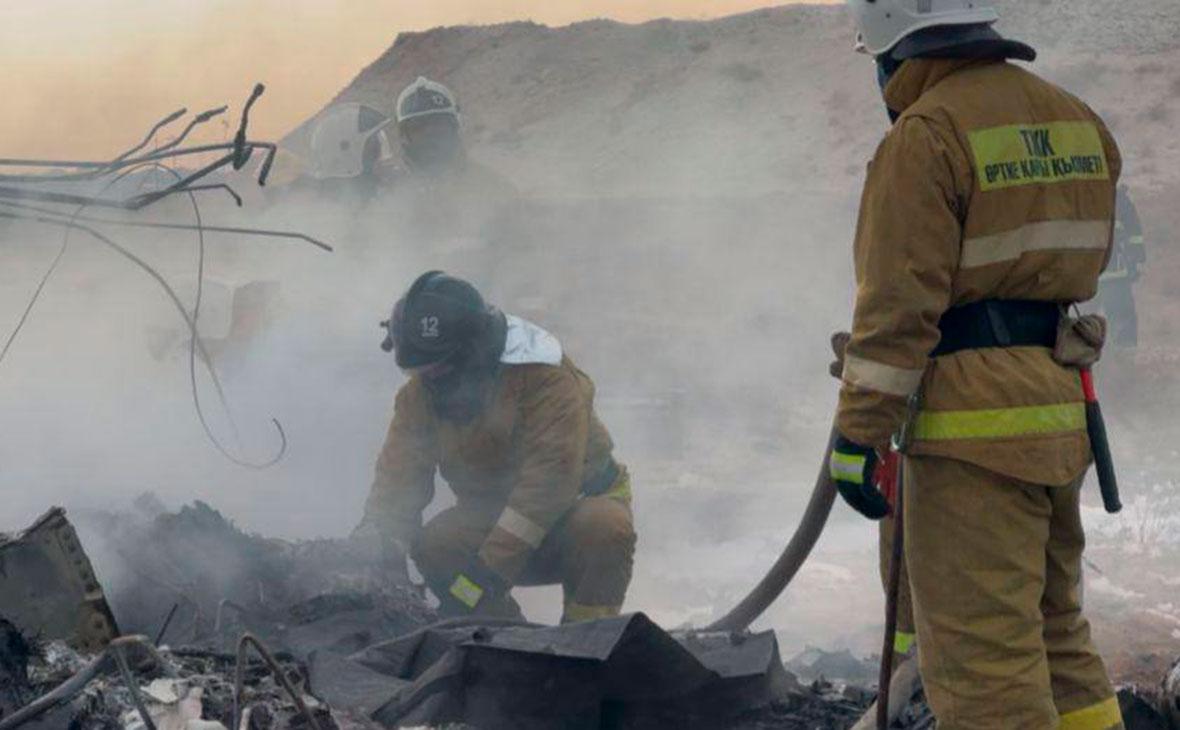 Спасатели работают на месте авиакатастрофы в Актау, декабрь 2024 года