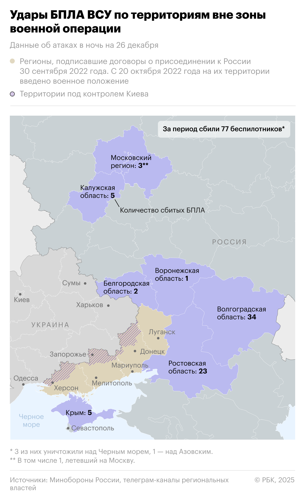 Ночью было уничтожено 14 беспилотников в городских округах Подольск, Раменское, Люберцы, Домодедово и Коломна, заявил губернатор. Мэр Москвы Сергей Собянин говорил, что на подлете к городу шесть дронов были сбиты в Раменском городском округе, четыре — в Подольском, два — в городском округе Домодедово, по одному — в Люберцах и Коломне.