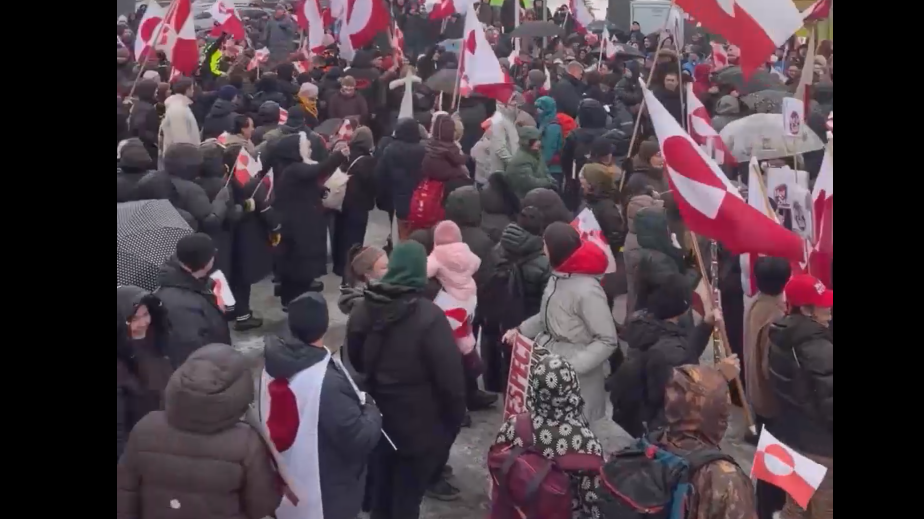В столице Гренландии Нууке также проходят протесты. В них участвуют крупные политики страны, в том числе премьер Гренландии Йенс-Фредерик Нильсен, а также бывшие главы правительств Ким Кильсен и Муте Боуруп Эгеде.