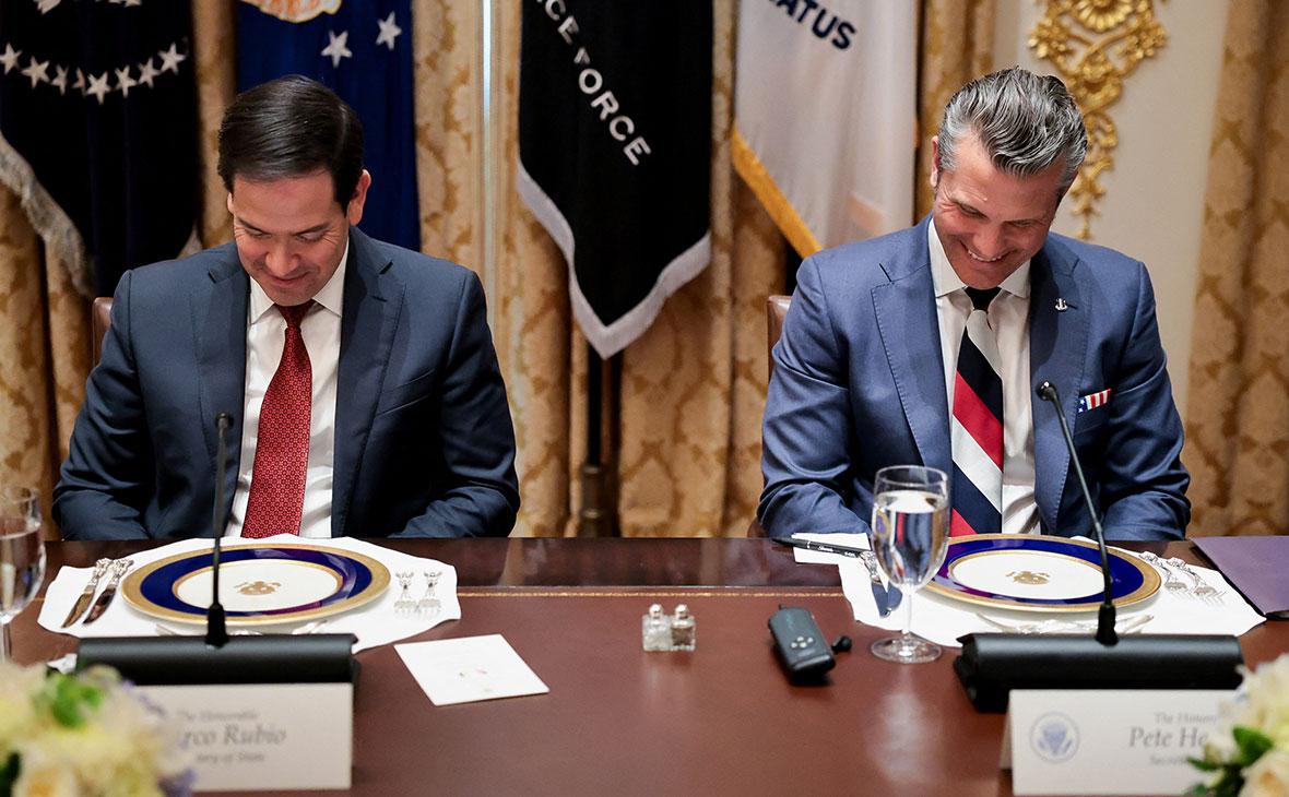 Марко Рубио и Пит Хегсет (слева направо) на встрече Дональда Трампа с Владимиром Зеленским в Белом доме в Вашингтоне, США, 17 октября 2025 года