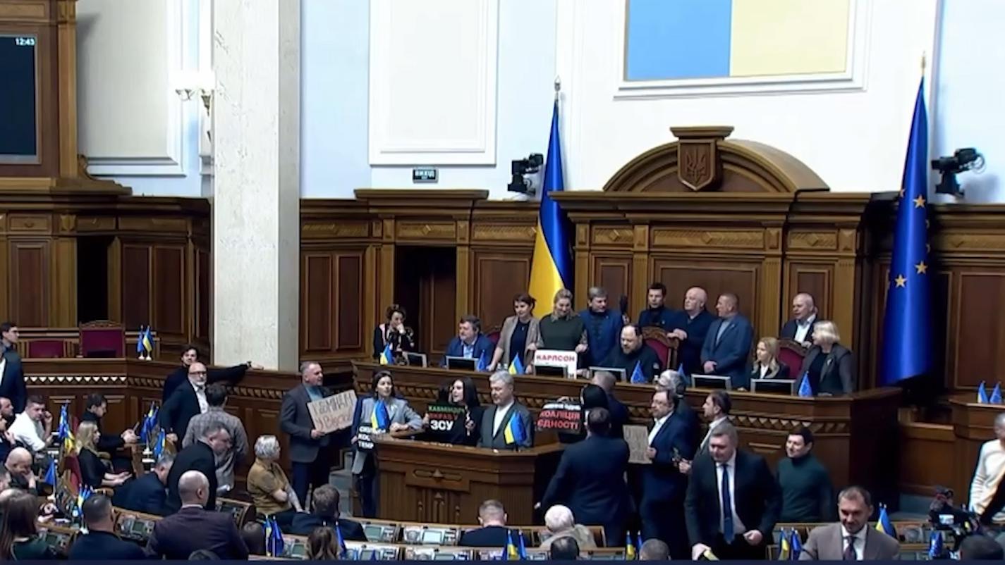 Порошенко и его партия блокировали трибуну Рады, требуя отставки кабмина