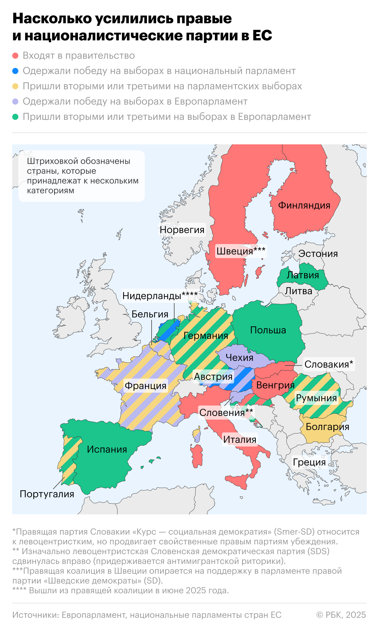Тем не менее, как считают аналитики ECFR, европейское общество по большей части демонстрирует готовность к «бегству» от реальности, которую пытается навязать Европе администрация Трампа. «Вопрос в том, смогут ли европейские политики взять это под контроль», — пишут эксперты. В частности, по их оценкам, не исключено, что к команде союзников Трампа в Европе присоединится Чехия (если на октябрьских выборах победит оппозиционная партия экс-премьера Андрея Бабиша), а также Словения, если на голосовании в 2026 году первой придет партия националиста Янеза Янша.