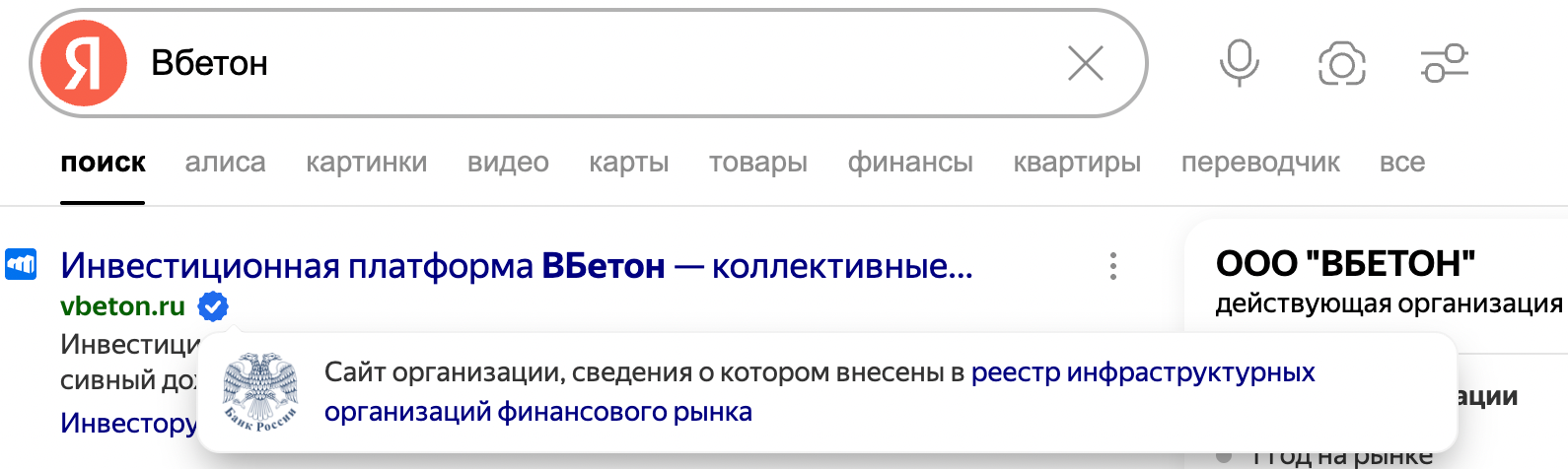 Поисковик «Яндекса» использует информацию из этого реестра и добавляет синюю «галочку» в поисковую выдачу рядом с адресом сайта, о котором в реестре ЦБ есть действующая запись. На такие галочки также можно ориентироваться, когда ищите информацию по теме инвестиций.
