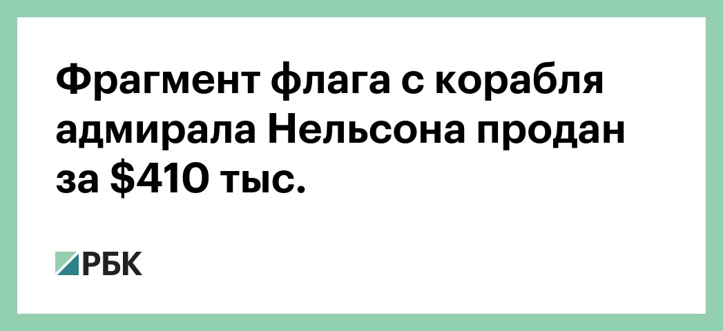 На аукционе Sotheby's продан фрагмент флага «Юнион Джек» с корабля британского адмирала Горацио Нельсона. Об этом сообщается на сайте аукционного дома.