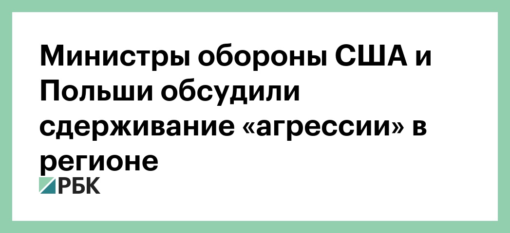 Министр обороны США Джеймс Мэттис во время встречи со своим польским коллегой Мариушем Блащаком обсудил усилия двух стран по сдерживанию «региональной агрессии». Об этом рассказала представитель Пентагона Дана Уайт, сообщается на сайте американского Минобороны.