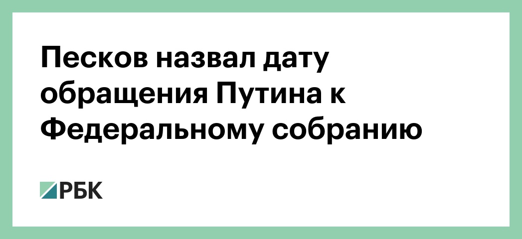 Ранее о том, что обращение президента состоится 1 марта говорил сопредседатель избирательного штаба Путина Александр Румянцев. Однако Песков 20 февраля отказался подтвердить эту информацию, заявив, что дата проведения мероприятия будет анонсирована «своевременно».