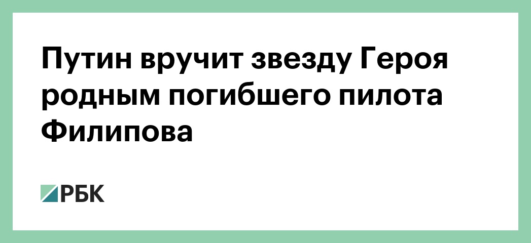Путин вручит звезду Героя родным погибшего пилота Филипова