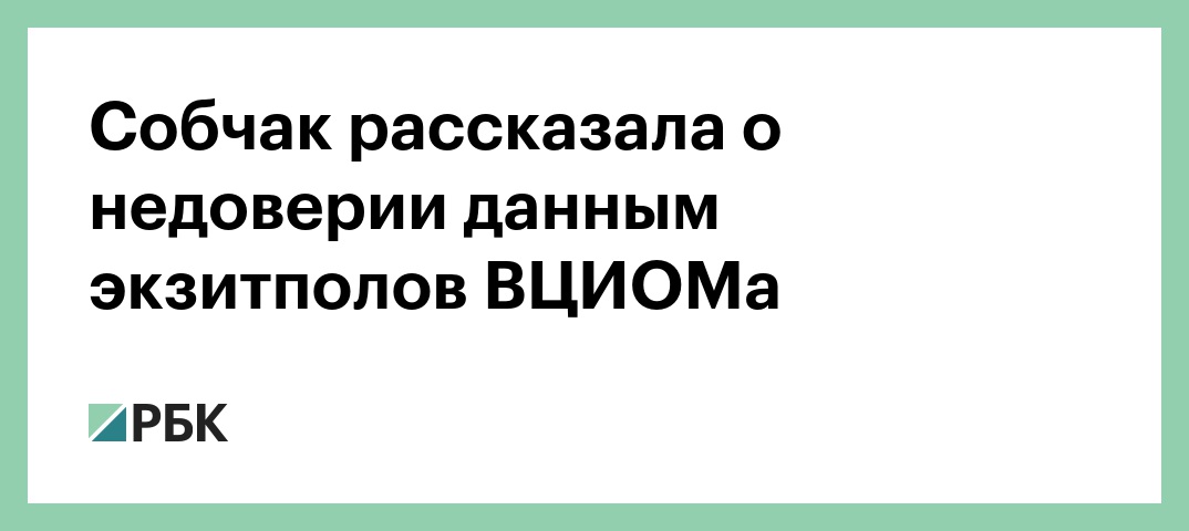 Кандидат в президенты России от партии «Гражданская инициатива» Ксения Собчак, отвечая на вопрос корреспондента РБК о результатах проведенных Всероссийским центром изучения общественного мнения (ВЦИОМ) экзитполов, заявила, что она не доверяет этим данным.