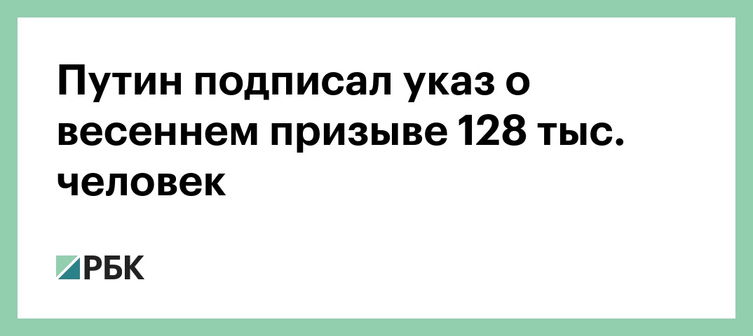«Осуществить с 1 апреля по 15 июля 2018 г. призыв на военную службу граждан России в возрасте от 18 до 27 лет, не пребывающих в запасе и подлежащих <...> призыву на военную службу, в количестве 128 000 человек», — говорится в тексте указа.