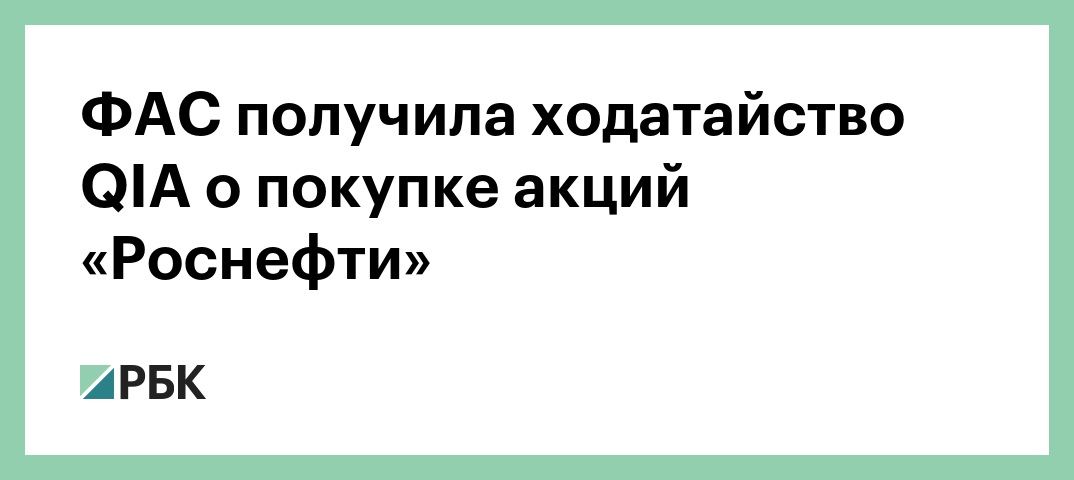 ФАС получила ходатайство QIA о покупке акций «Роснефти»