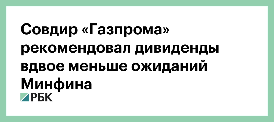 Совет директоров «Газпрома» рекомендовал собранию акционеров утвердить дивиденды по итогам 2017 года на уровне 8,04 руб. на акцию, что составляет около 190 млрд руб., следует из сообщения компании, опубликованной на сайте центра раскрытия корпоративной информации. В 2016 году дивиденды составляли 8,0397 руб. на акцию. Таким образом совет директоров «Газпрома» одобрил предложение правления компании выплатить дивиденды почти вдвое меньше ожиданий Министерства финансов. Дату закрытия реестра на получение дивидендов совет директоров «Газпрома» рекомендовал установить 19 июля 2018 года.