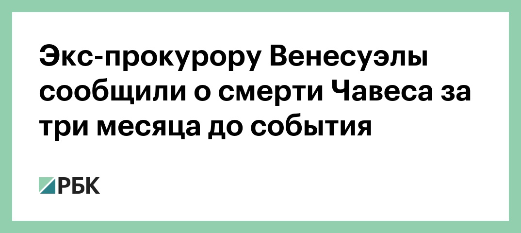 Бывший генеральный прокурор Венесуэлы Луиса Ортега Диас рассказала, что 28 декабря 2012 года ей позвонил тогдашний председатель Национальной ассамблеи Венесуэлы Диосдадо Кабельо и сообщил о смерти президента страны Уго Чавеса, передает венесуэльская газета El Nacional. По данным издания, Диас рассказала об этом в интервью изданию Punto de Corte, однако сайт этого издания по состоянию на 9:00 мск был недоступен.