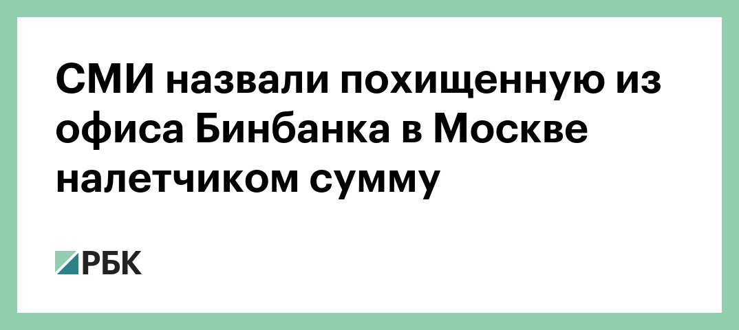 СМИ назвали похищенную из офиса Бинбанка в Москве налетчиком сумму