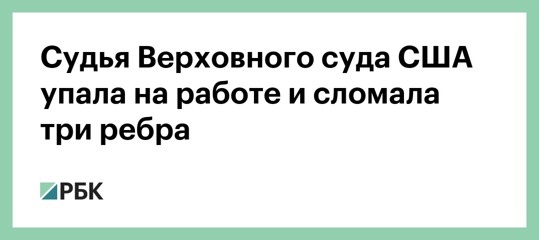 Судья Верховного суда США Рут Гинзбург сломала три ребра, упав в своем офисе в здании суда, говорится в официальном пресс-релизе.