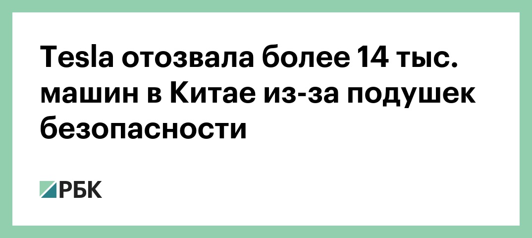 Tesla отозвала более 14 тыс. машин в Китае из-за подушек безопасности