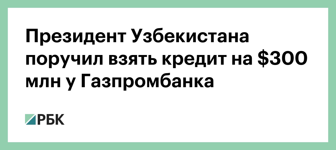 Президент Узбекистана поручил взять кредит на $300 млн у Газпромбанка