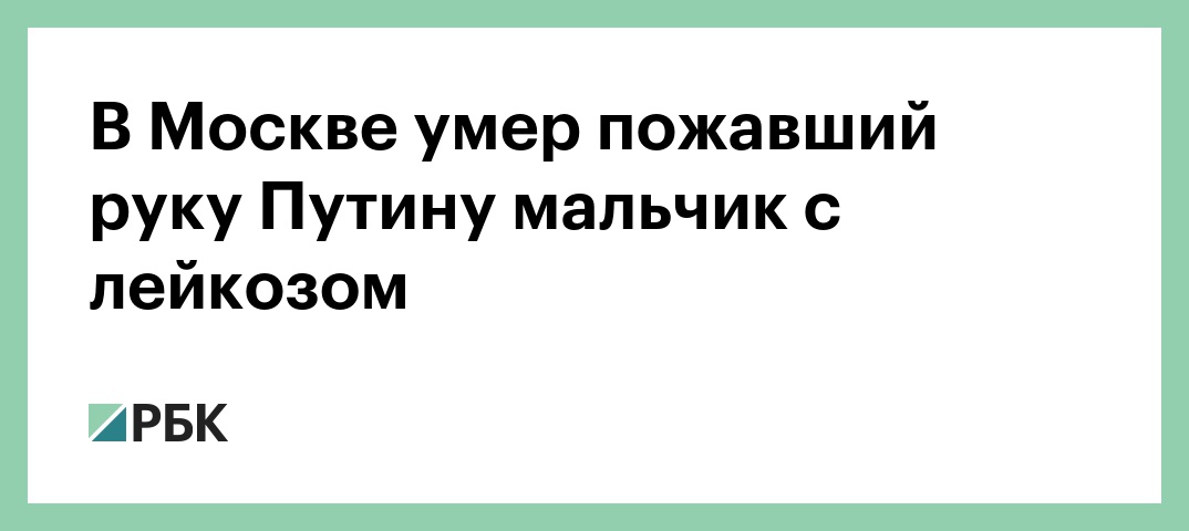 В Москве умер пожавший руку Путину мальчик с лейкозом