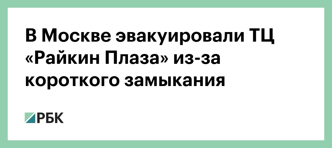 Посетителей торгового центра «Райкин Плаза» на северо-востоке Москвы эвакуировали из здания после короткого замыкания в электрооборудовании, сообщили РБК в пресс-службе ГУ МЧС по столице.
