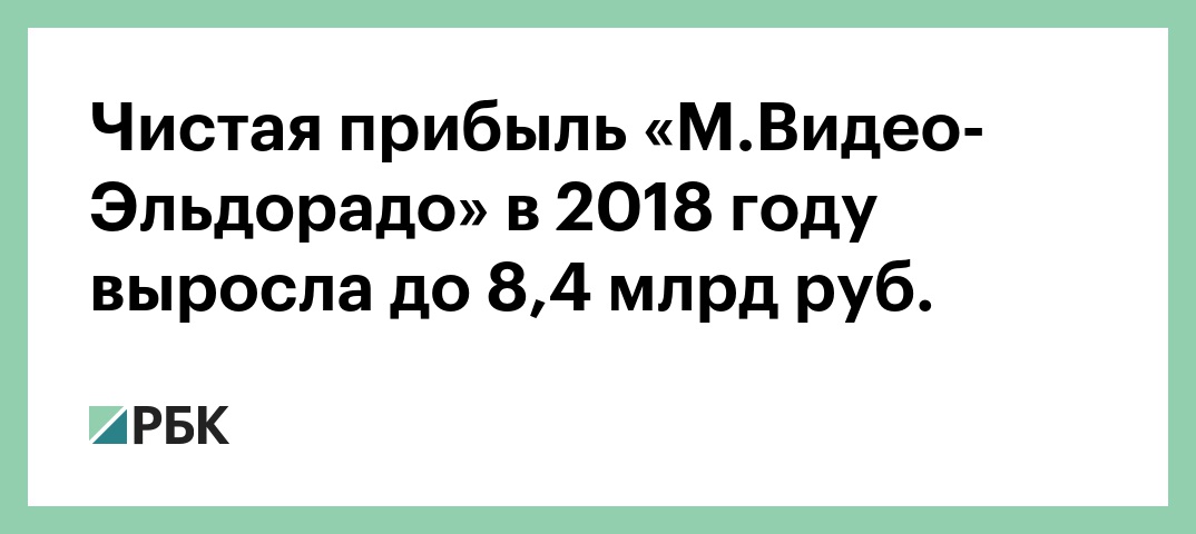 Консолидированная чистая прибыль группы «М.Видео-Эльдорадо» в 2018 году по международным стандартам финансовой отчетности (МСФО) выросла на 20% — до 8,365 млрд руб. Об этом говорится в сообщении компании, поступившем в РБК.