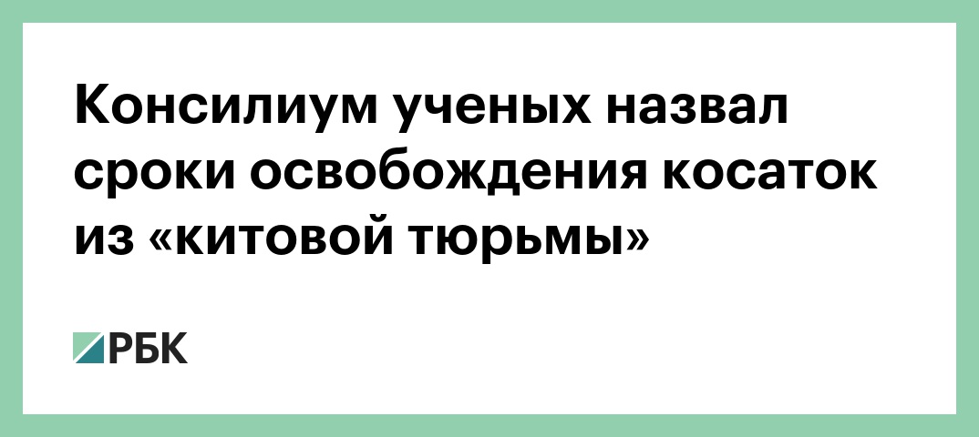 Косаток и белух могут выпустить из «китовой тюрьмы» на северо-западе Охотского моря не ранее июня 2019 года. Об этом сообщает «РИА Новости» со ссылкой на секретаря итогового консилиума, заседание которого состоялось 25 апреля во Всероссийском научно-исследовательском институте рыбного хозяйства и океанографии (ВНИРО).