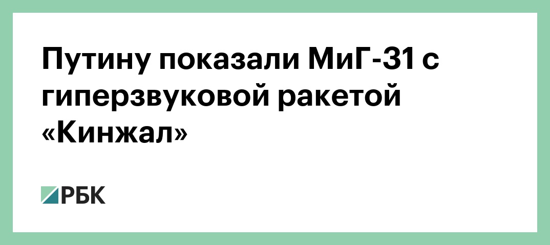 Путину показали МиГ-31 с гиперзвуковой ракетой «Кинжал»
