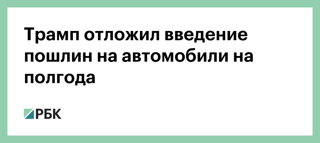 Крайним сроком принятия решения по вопросу о введении пошлин на импортные автомобили была суббота, 18 мая, однако Вашингтон дал себе еще 180 дней на решение этого вопроса. При этом Белый дом уточнил, что условия для американской автомобильной промышленности должны быть улучшены за счет сокращения импорта.