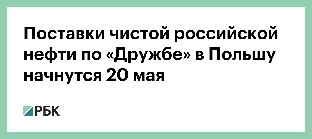 Поставки чистой российской нефти по «Дружбе» в Польшу начнутся 20 мая