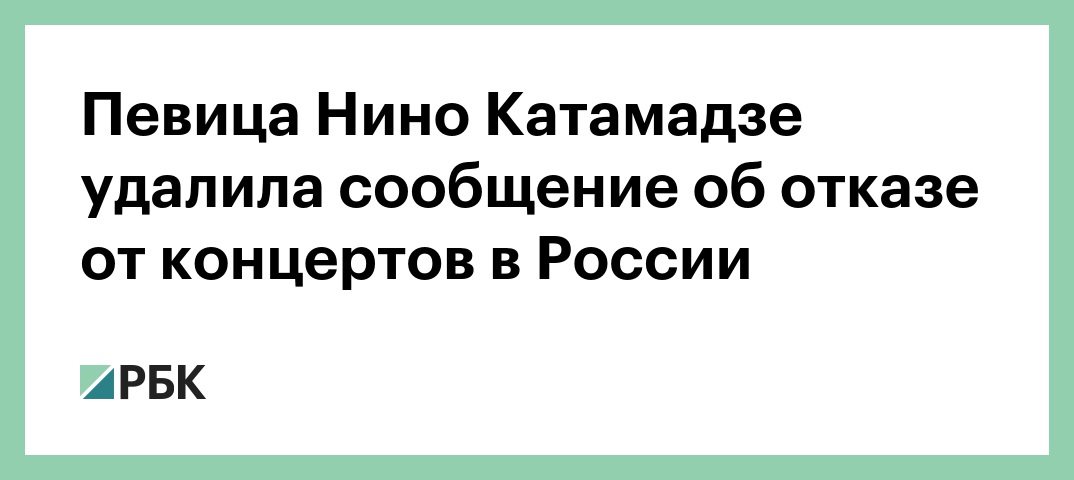 Грузинская певица Нино Катамадзе удалила в своем Facebook сообщение об отказе выступать с концертами в России. Ее последнее сообщение в социальной сети датируется от 29 июня.