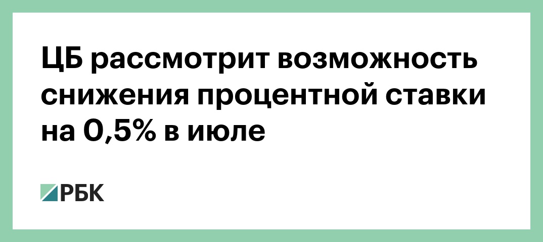 ЦБ рассмотрит возможность снижения процентной ставки на 0,5% в июле