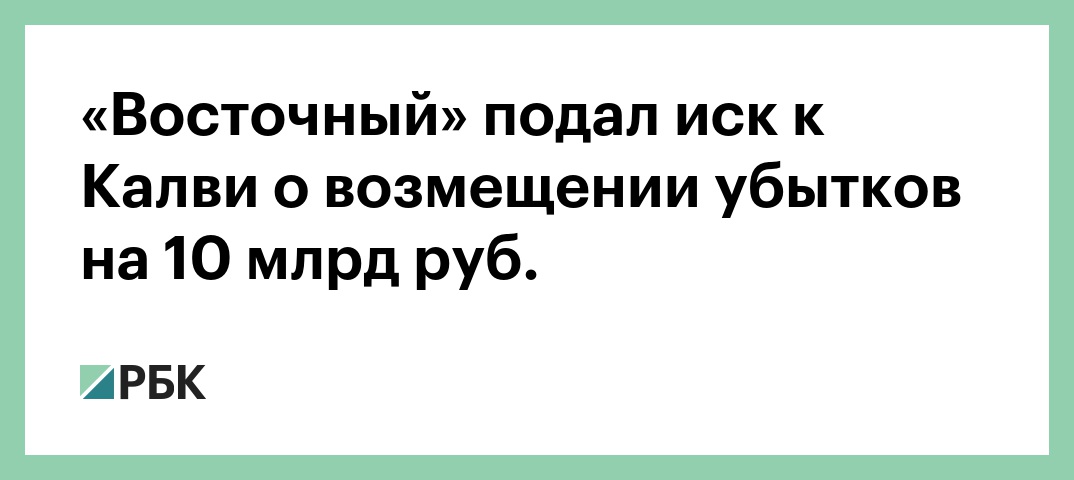 «Восточный» подал иск к Калви о возмещении убытков на 10 млрд руб.