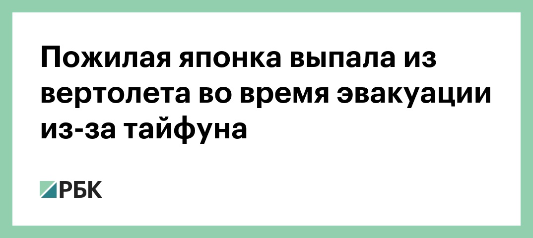 В Японии 70-летняя женщина выпала из вертолета во время эвакуации из-за тайфуна «Хагибис». Об этом сообщает агентство Kyodo.