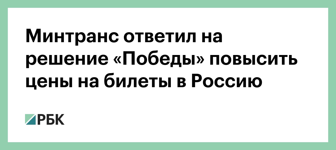 Минтранс ответил на решение «Победы» повысить цены на билеты в Россию