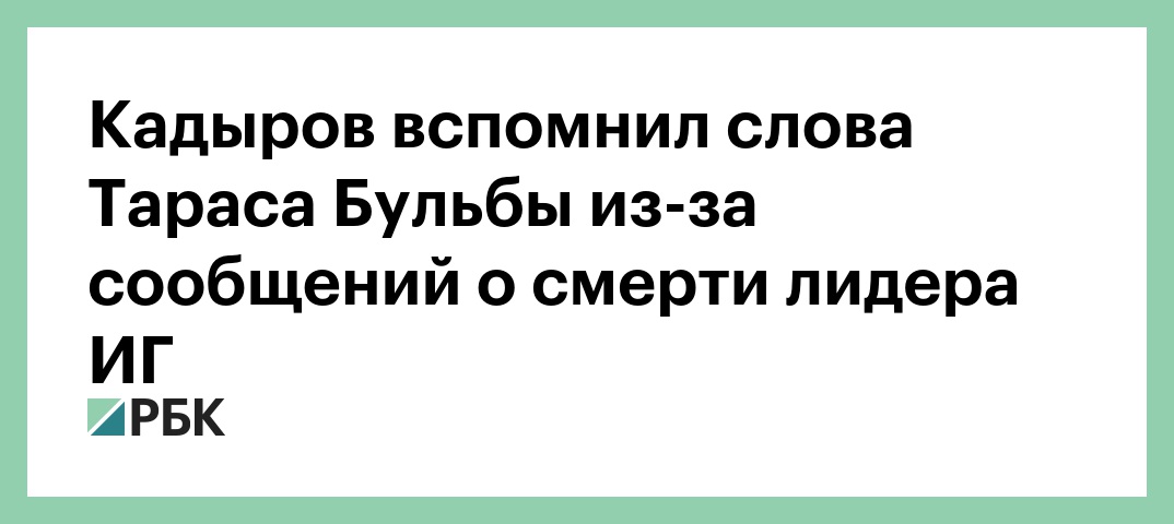Глава Чечни Рамзан Кадыров процитировал Гоголя, комментируя в своем Telegram-канале информацию о возможной ликвидации лидера запрещенной в России террористической организации «Исламское государство» Абу Бакра аль-Багдади.
