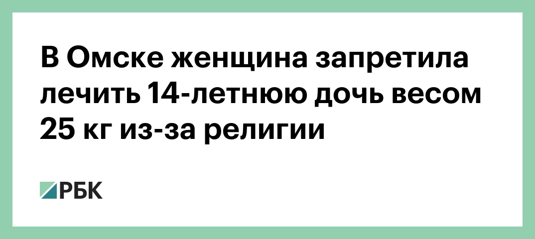 В Омске женщина запретила лечить 14-летнюю дочь весом 25 кг из-за религии