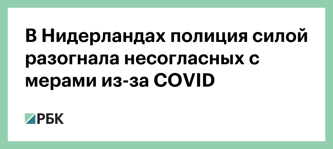 На прошлой неделе демонстрация против ограничений из-за COVID-19 в Амстердаме также вышла из-под контроля. В центре города собрались около 2 тыс. человек, полиция применила водометы, в ответ в них полетели камни. Были ранены двое правоохранителей, задержаны 143 человека.