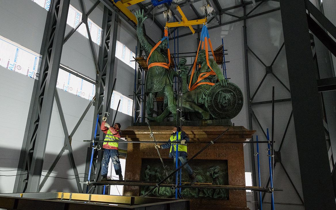 Памятник Кузьме Минину и Дмитрию Пожарскому на Красной площади демонтировали для реставрации, следует из сообщения Исторического музея (поступило в РБК).