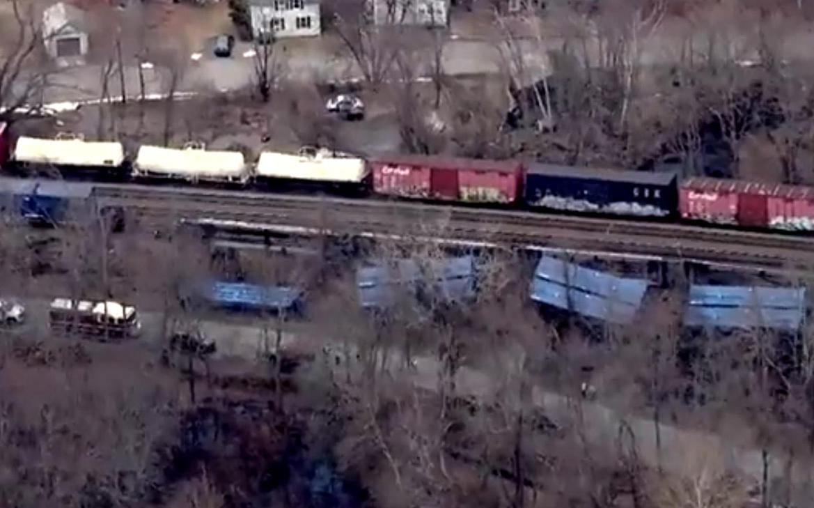 Появилось видео с перевернувшимся товарным поездом в США