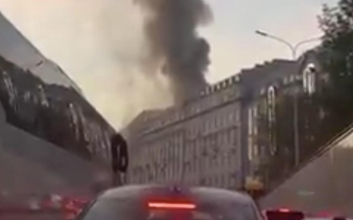 На Никитском бульваре в Москве загорелся жилой дом
