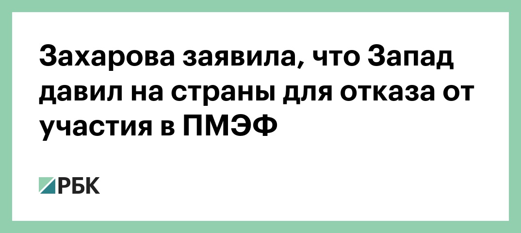 Россия обладает информацией о том, что Запад давил на разные страны, чтобы они отказались от участия в ПМЭФ. Об этом заявила официальный представитель российского МИДа Мария Захарова в интервью ТАСС на полях форума.