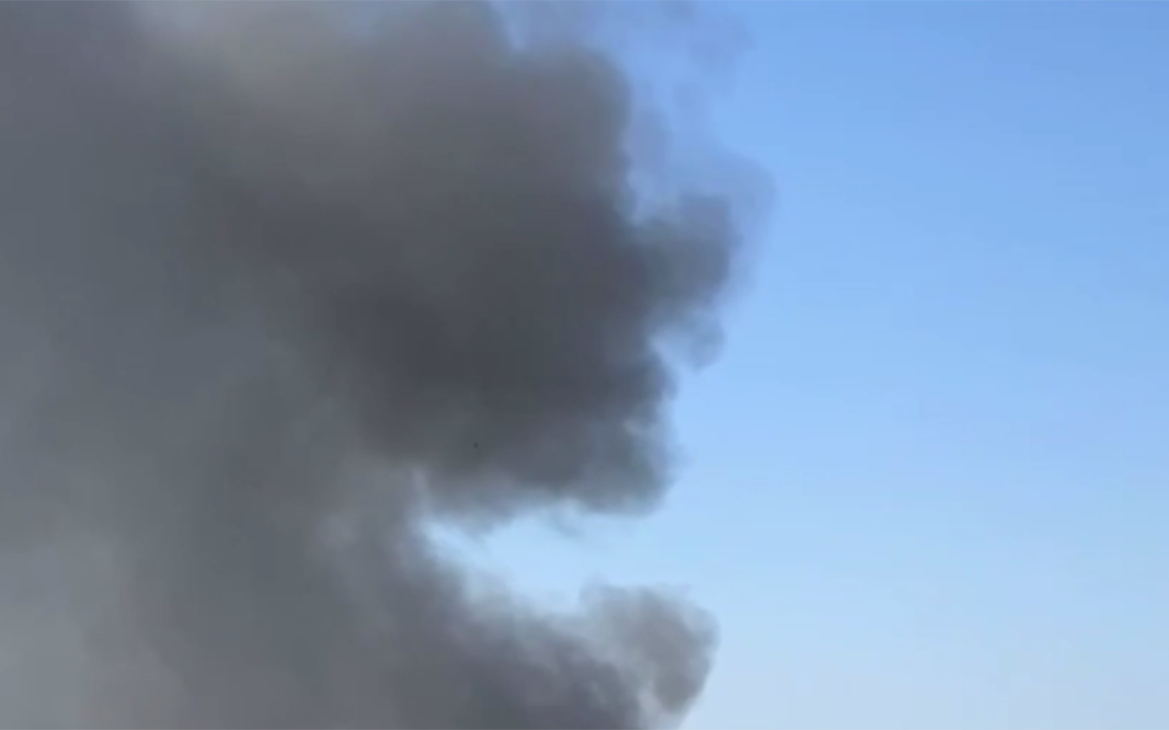 Телеграм-канал «ЧП Симферополь» пишет, что перед пожаром местные жители слышали звуки взрывов. На опубликованной видеозаписи виден густой черный дым, поднимающийся над городом.