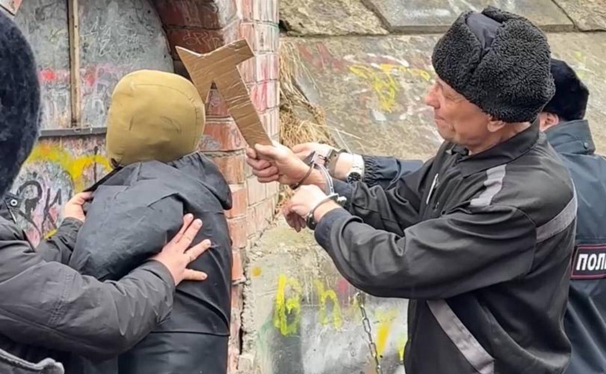 Михаил Попков во время следственного эксперимента