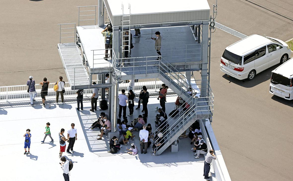 Люди, эвакуированные после предупреждения о цунами в Японии (Фото: Kyodo / Reuters)