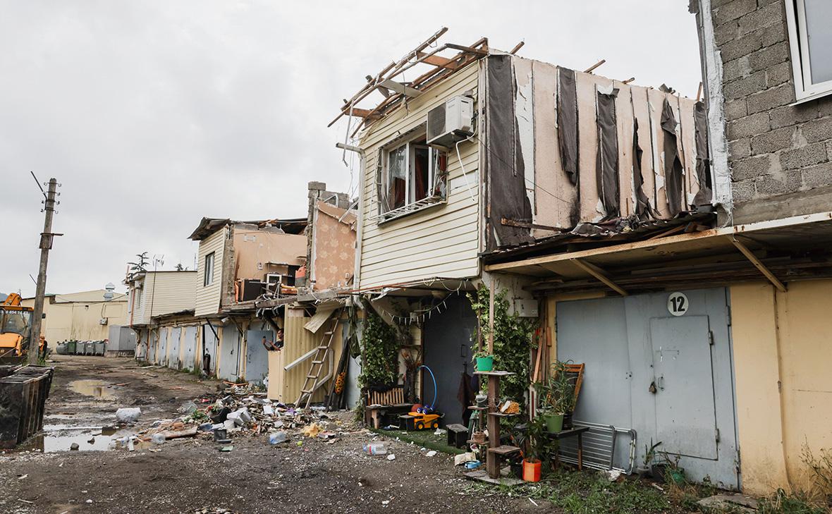 Последствия падения обломков БПЛА на строения в гаражном кооперативе в Адлере
