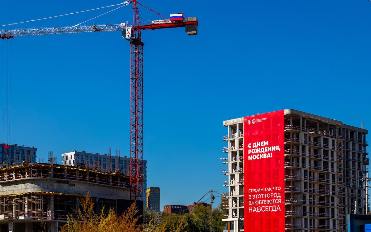 Столичные стройки украсили ко Дню города поздравительными баннерами